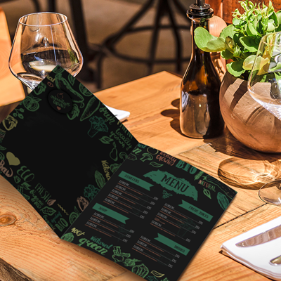 Imprime tus cartas para bar y restaurante plegada en papel estucado semi-mate. Aprovecha para actualizar tus cartas de restaurante y añadirle el código QR para que los clientes puedas visualizar la carta en su teléfono móvil.